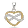 infinity hjärta hängen i silver och förgyllt silver med blank yta og facettslipad vit zirkon.