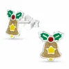 jul klockor örhängen i silver med blank yta och 2 facettslipade röda kristaller och slät brun emalj och slät grön emalj och slät gul emalj.