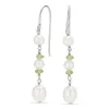 långa pärla örhängen i rhodinerat silver med blank yta och 4 facettslipade gröna ametister och 6 vita sötvattenspärlor.