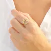 klar kvarts ring i förgylld mässing med blank och borstad yta och slät vit kvarts.