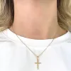 kors hängen i 9 karat guld med blank yta og 11 facettslipade vita zirkoner.