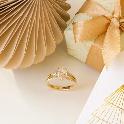 Kvarts diamantring i 14 karat guld 0,90 ct 0,12 ct
