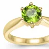 grön peridot solitärring i 14 karat guld med blank yta och 1 facettslipade peridoter