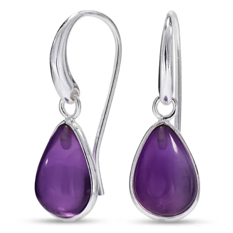 droppe lila kristal örhängen i silver med blank yta och 2 facettslipade lila ametister.