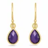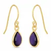 Långa droppe ametist örhängen i förgyllt silver - Loom Stones