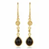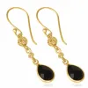 Långa droppe onyx örhängen i förgyllt silver
