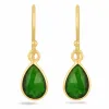 långa droppe örhängen i förgyllt silver med blank yta och 2 facettslipade gröna kromdiopsid.