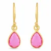 långa droppe örhängen i förgyllt silver med blank yta och 2 facettslipade rosa kvarts.