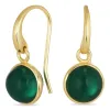 Runda mörkgrön kristall örhängen i förgylld mässing - Loom Stones