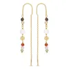 Långa kedja örhängen i förgyllt silver - Loom Stones