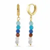 långa örhängen i förgyllt silver med blank yta och facettslipad blå sten.