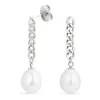 långa pärla kedja örhängen i silver med blank yta 2 vita sötvattenspärlor.