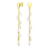 Långa vit pärla örhängen i förgylld mässing - Eliné