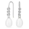 långa pärla örhängen i silver med blank yta och 6 facettslipade vita zirkoner 2 vita sötvattenspärlor.