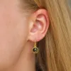 Runda grön kristal örhängen i förgylld mässing - Loom Stones