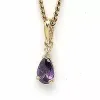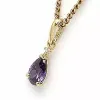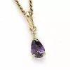 Lille droppe guld hängen i 14 karat guld med blank yta og 1 facettslipade lila syntetiska ametister og 1 facettslipade vita zirkoner.