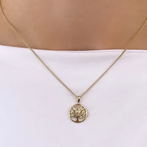 13 mm livets träd diamant hängen i 14 carat guld 0,052 ct