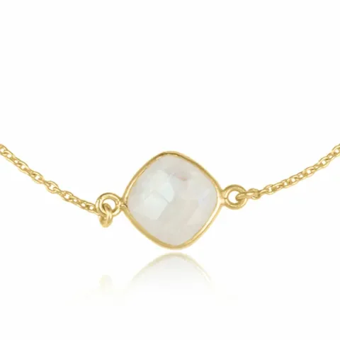 månsten armband i förgyllt silver med hängen i förgyllt silver med blank yta och 1 facettslipade regnbågefärgad månstenar.