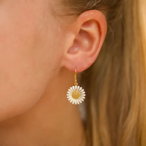 14,5 mm prästkrage örhängen i förgyllt silver med blank yta och slät vit emalj.