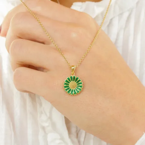 14,5 mm prästkrage mörkgrön hängen i förgyllt silver - Marie
