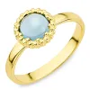 mörkblå kristal ring i förgylld mässing med blank yta och 1 slät mörkblåa kristaller.