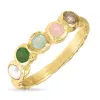 multifärgat ring i förgyllt silver med strukturerad yta och slät grön aventurin och slät blå kristal och slät rosa kvarts och slät blå labradorit.