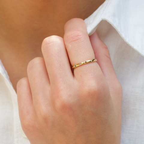 multifärgat zirkon ring i förgyllt silver med blank yta och facettslipad multifärgat zirkon.