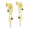 brun örhängen i förgylld mässing med blank yta och slät rökfärgad kvarts och slät rosa kvarts och slät multifärgat månsten.