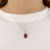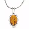 ovalt blommor hängen i silver med blank yta og 1 cabochonslipade cognac färgad bärnstenar.