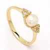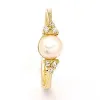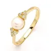 pärla ring i förgyllt silver med blank yta och 6 facettslipade vita zirkoner och 1 cabochonslipade vita sötvattenspärlor.