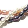 3-raders pärlhalsband med ellipsform multifärgade sötvattenspärlor.