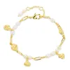 pärla armband i förgylld mässing med strukturerad yta vit sötvattenspärlor.