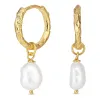 pärla creol i förgylld mässing med strukturerad yta 2 vita pärlor.