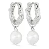 12,5 mm pärla creol i silver med strukturerad yta 2 vita pärlor.