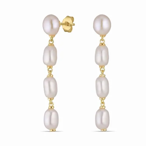 pärla kedja örhängen i förgyllt silver med blank yta 8 vita sötvattenspärlor.