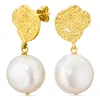 pärla örhängen i förgylld mässing med strukturerad yta 2 vita pärlor.
