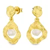 pärla örhängen i förgylld mässing med strukturerad yta 2 vita syntetiska pärlor.