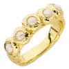 vit pärla ring i förgylld mässing med strukturerad och blank yta och 5 facettslipade vita pärlor.