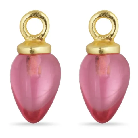 rosa kristal hängen till örhängen i förgyllt silver med blank yta och 2 slät rosa kristaller.
