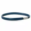 platt blå armband i läder med stål lås med matt yta.