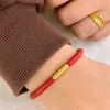 Platt röd magnetarmband i läder med förgyllt stål lås x 6 mm