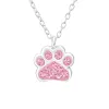 tass rosa halsband i silver med blank yta och slät rosa kristal.