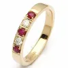 rubin alliancring i 14 karat guld med blank yta och 2 briljantslipade diamanter i Wesselton/SI och 3 facettslipade rubiner