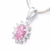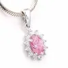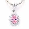 rosett hängen i rhodinerat silver med blank yta og 12 facettslipade vita zirkoner og 1 facettslipade rosa zirkoner.
