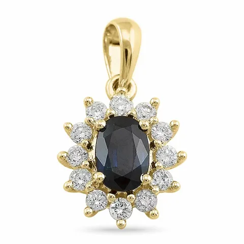 rosettberlock i 14 carat guld med blank yta och 1 briljantslipade diamanter WESSELTON/SI 0,26 ct och 12 facettslipade safirer 0,65 ct.