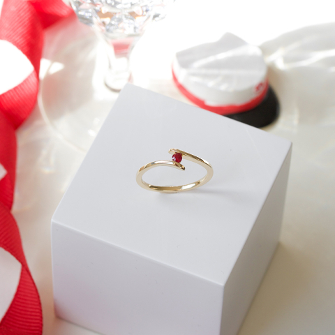 rubin ring i 9 karat guld med blank yta och 1 facettslipade rubiner