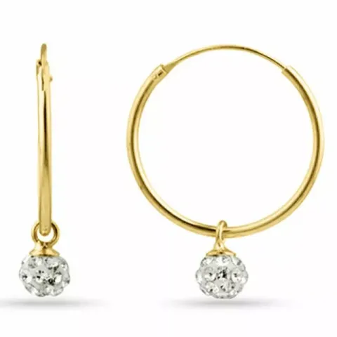 rund kristal örhängen i förgyllt silver med blank yta och 2 facettslipade vita kristaller.