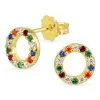runda multifärgade örhängestift i förgyllt silver med blank yta och facettslipad multifärgat zirkon.