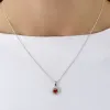 runt hjärta hängen i silver med blank yta og 14 facettslipade vita zirkoner og 1 slät röda emaljer.