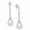 örhängestift i silver med blank yta och 14 briljantslipade vita zirkoner 2 vita pärlor.